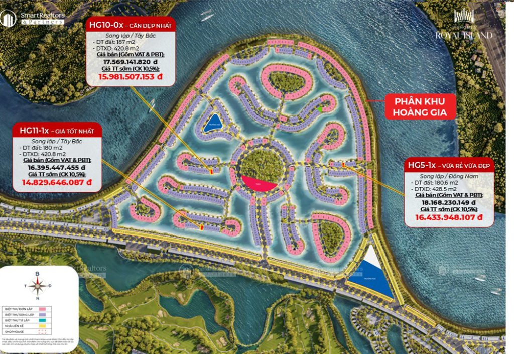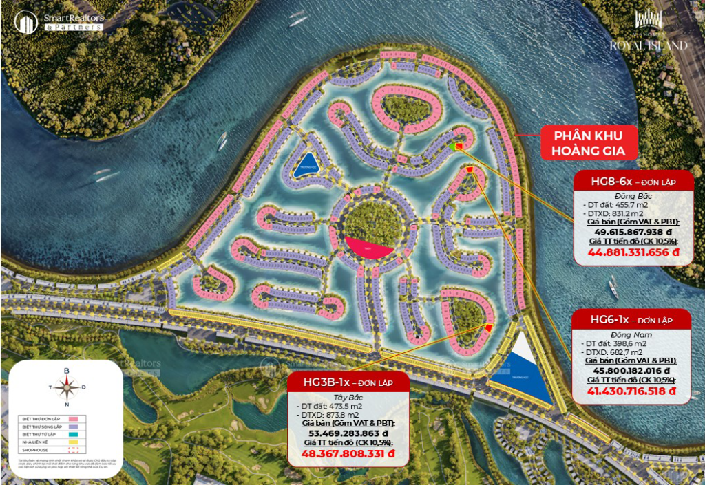 Tọa lạc tại vị trí đắc địa bậc nhất Thành phố Đảo Hoàng Gia, phân khu Hoàng Gia sở hữu vẻ đẹp độc đáo và không gian sống đẳng cấp, hứa hẹn mang đến cho cư dân cuộc sống thịnh vượng và trải nghiệm nghỉ dưỡng hoàn hảo với: